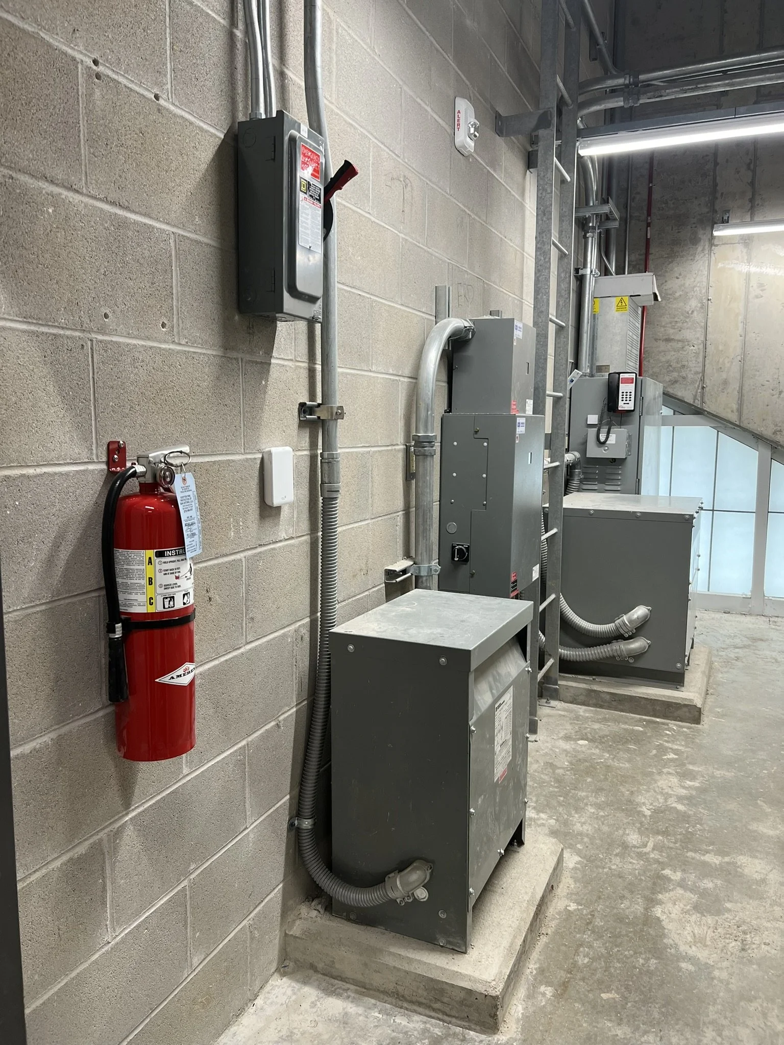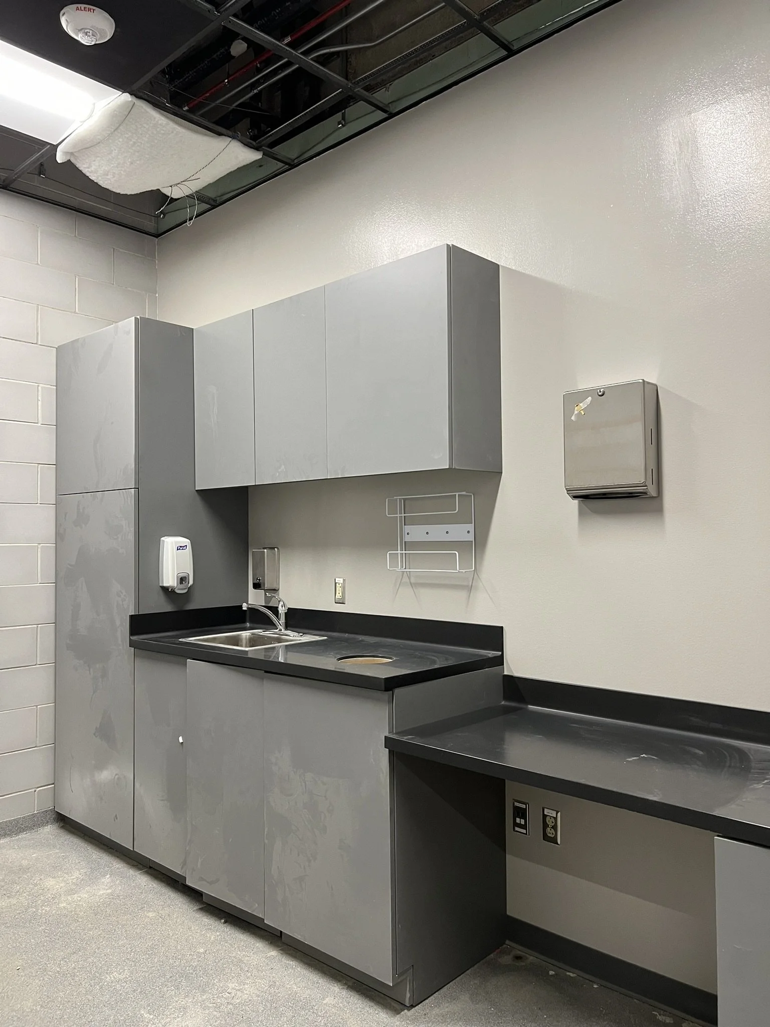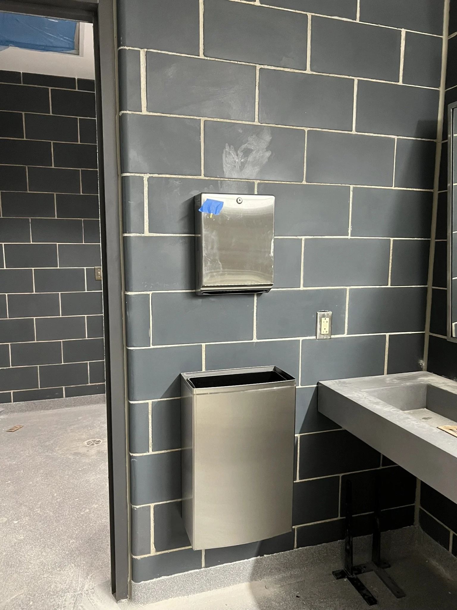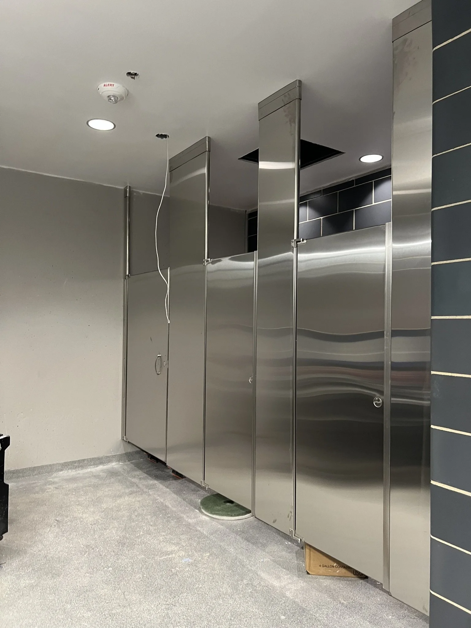 this project consisted of wire mesh partitions, toilet compartments, toilet accessories, fire protection, and entrance mats.